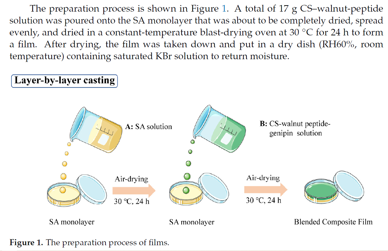 Preparation and Properties of Blended Composite Film Manufactured Using Walnut-Peptide–Chitosan–Sodium Alginate