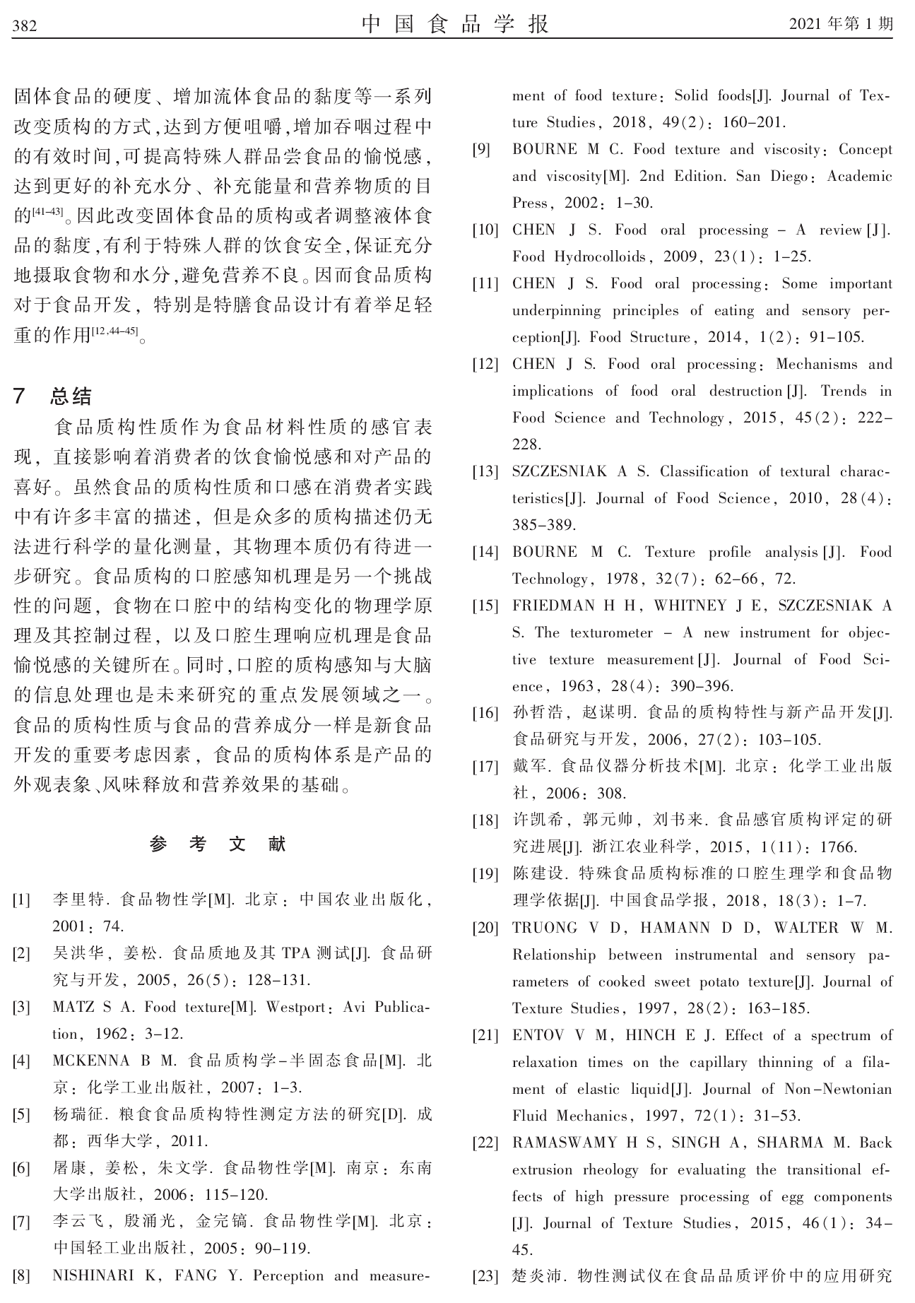 2021年1月,国内食品领域期刊《中国食品学报》刊登了浙江工商大学食品与生物工程学院陈伟、陈建设*题为“食品的质构及其性质”的论文。