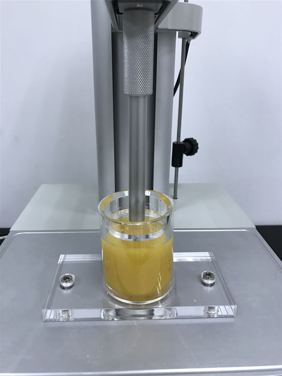 反挤压装置用于软粘稠之类的液体或者半固体物质,如加工处理过的水果、蔬菜、奶油、西红柿酱,测试其粘性(stickiness)、粘稠度(consistency)。