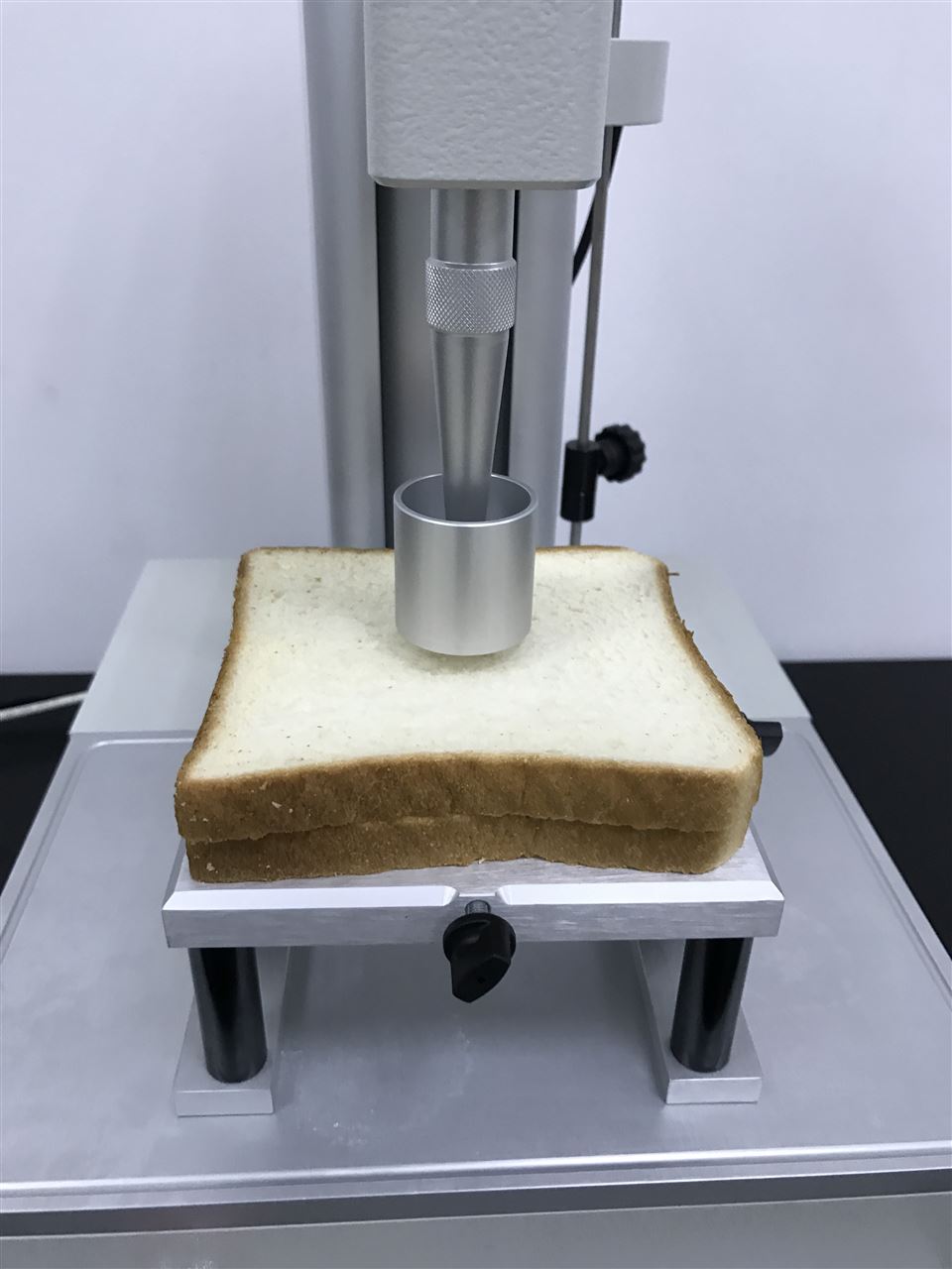 36mm圆柱形探头适用于测试蛋糕、面包等烘焙食品的硬度(hardness)、弹性(springiness)和咀嚼性(chewiness)测试。符合AACC (74-09)测定面包质地的标准方法