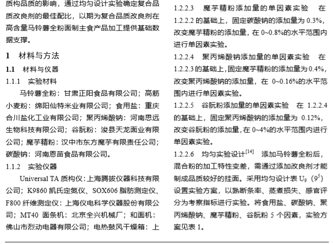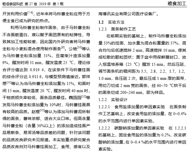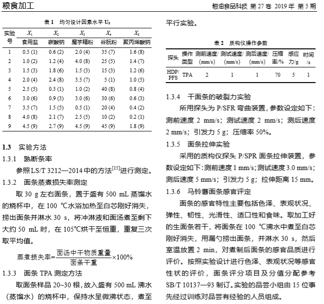 上海腾拔质构仪论文:高含量马铃薯全粉挂面 品质改良剂的研究