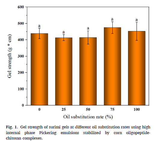 参考文献:Yufeng Xue et al. Improving surimi gel quality by corn oligopeptide-chitosan stabilized high-internal phase Pickering emulsions. Food Hydrocolloids, 2025.