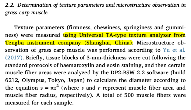 上海腾拔质构仪助力珠江水产研究所在Food Chemistry发表论文