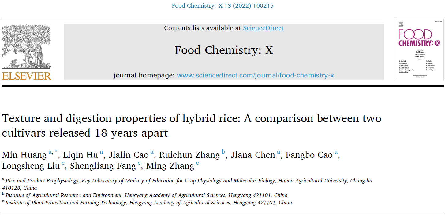 上海腾拔质构仪助力湖南农业大学在国际食品期刊发表关于杂交水稻研究论文