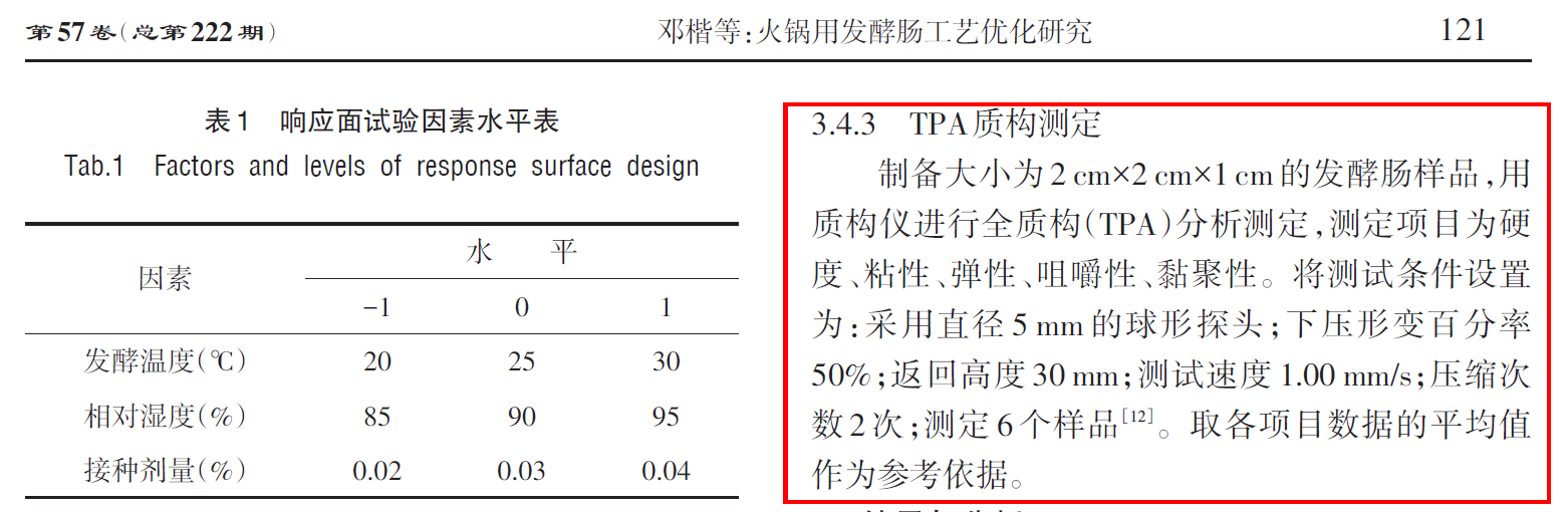 质构仪相关论文:火锅用发酵肠工艺优化研究