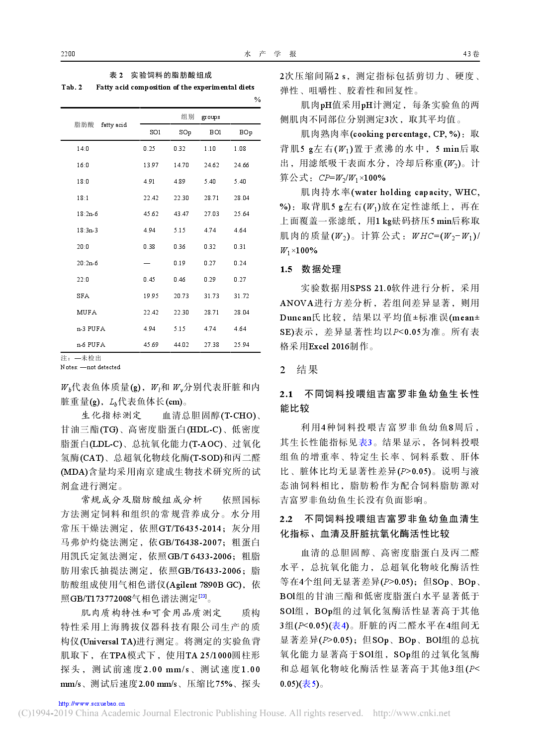 Technical articles2019年10月,国内期刊《水产学报》在线发表了华南农业大学海洋学院研究人员题为"液态和粉末脂肪对吉富罗非鱼幼鱼生长、健康及 肌肉品质的影响"的研究论文。在该论文中,研究人员用上海腾拔仪器公司的Universal TA质构仪测定罗非鱼肌肉的剪切力、硬度、弹性、回复性和咀嚼性。