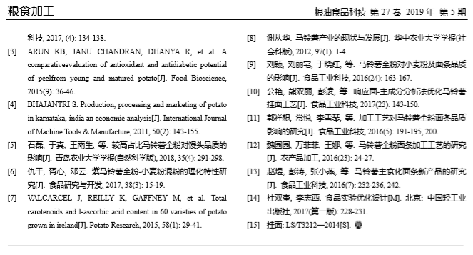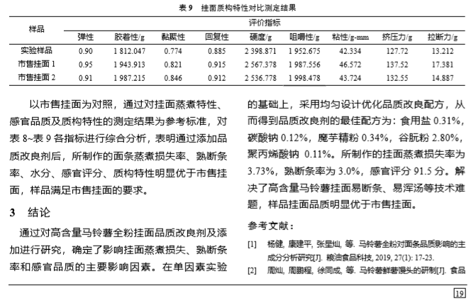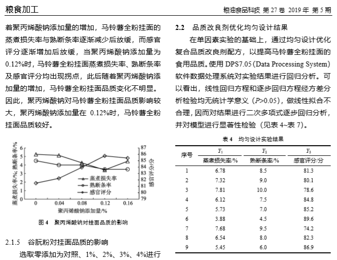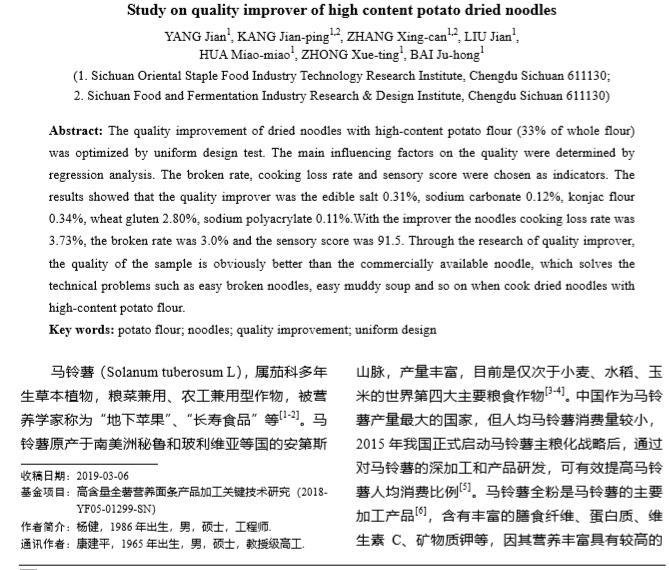 上海腾拔质构仪论文:高含量马铃薯全粉挂面 品质改良剂的研究